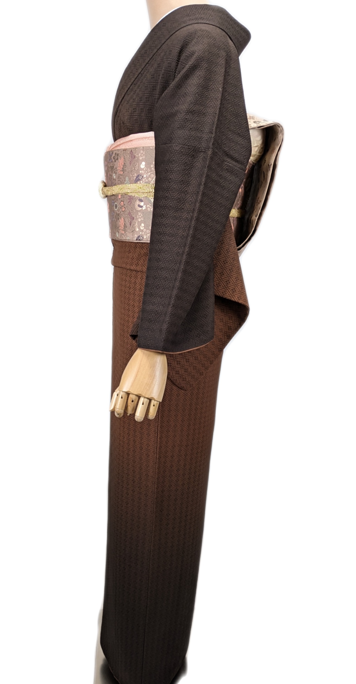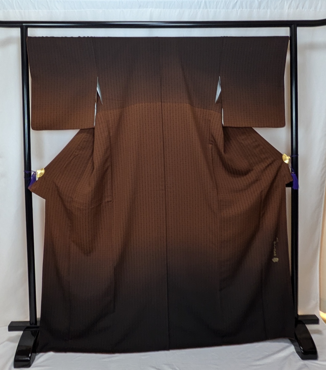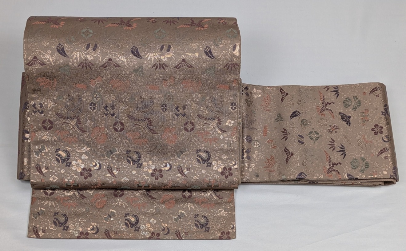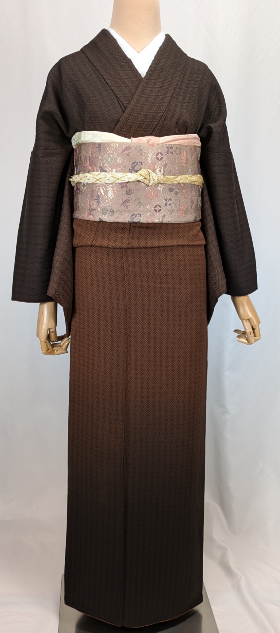 十代坂東三津五郎の落款いり 茶 ぼかし 菱文様 地紋はは三重襷