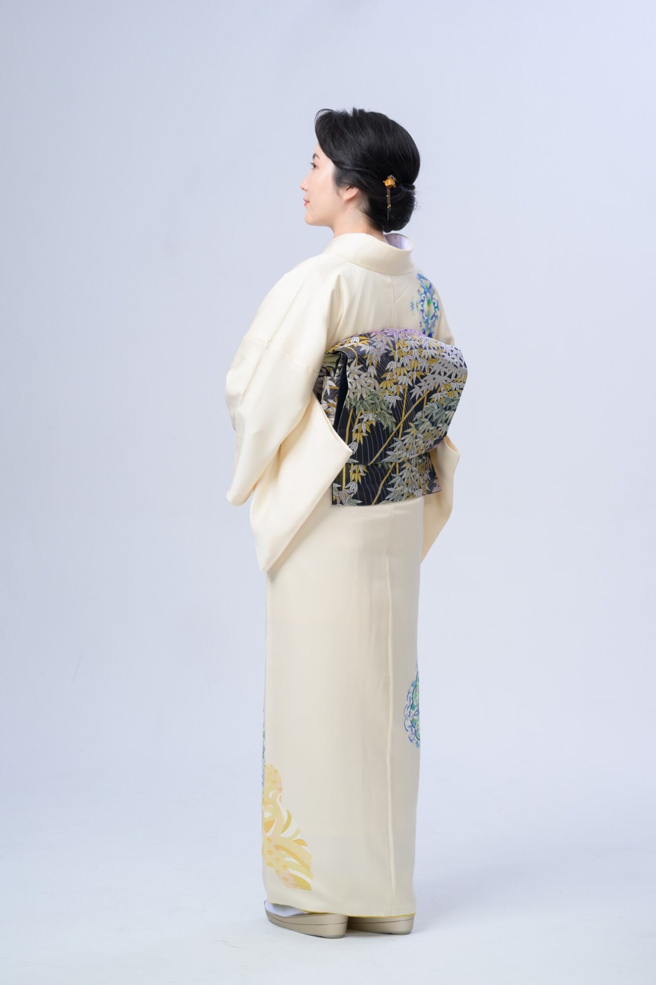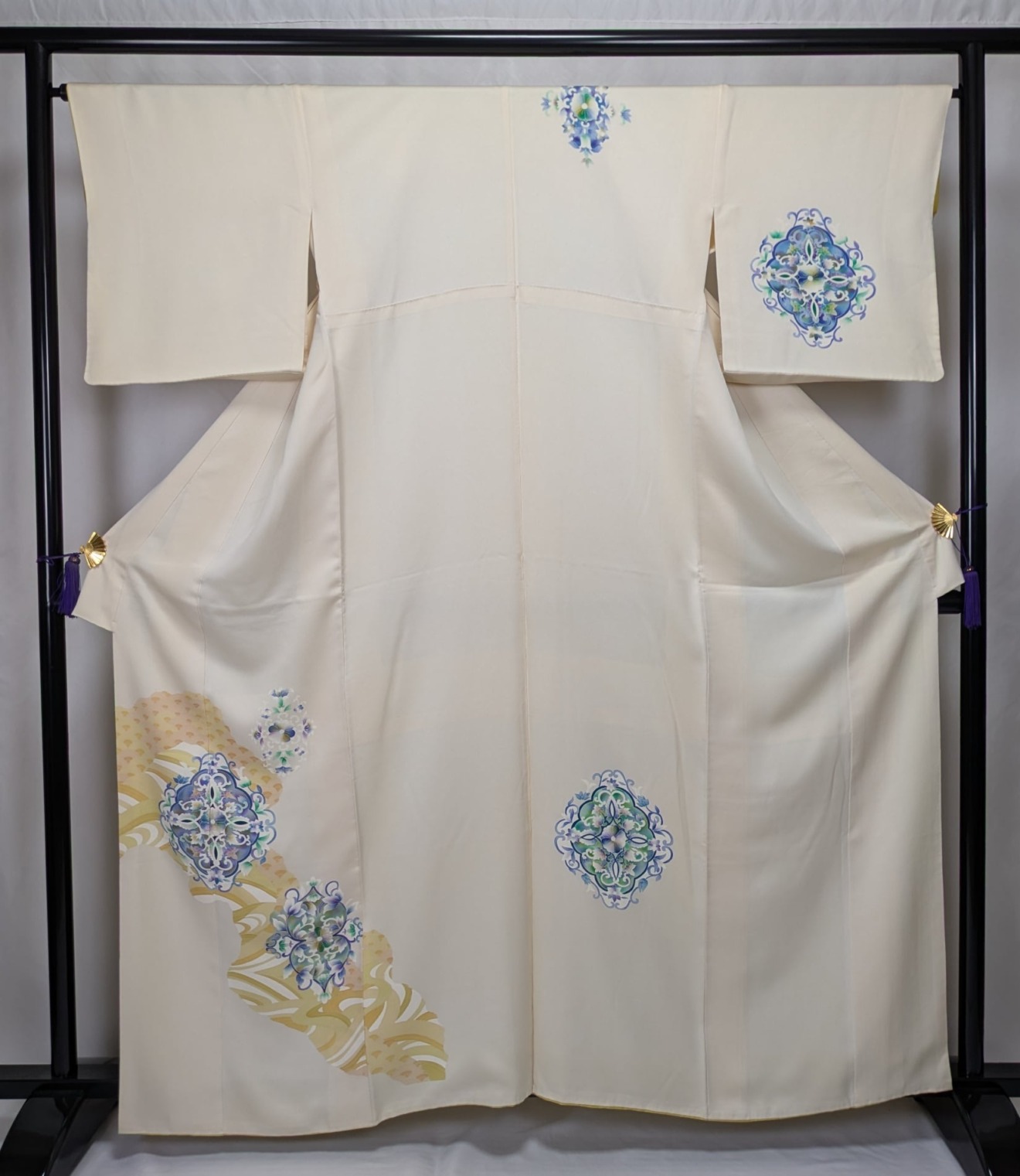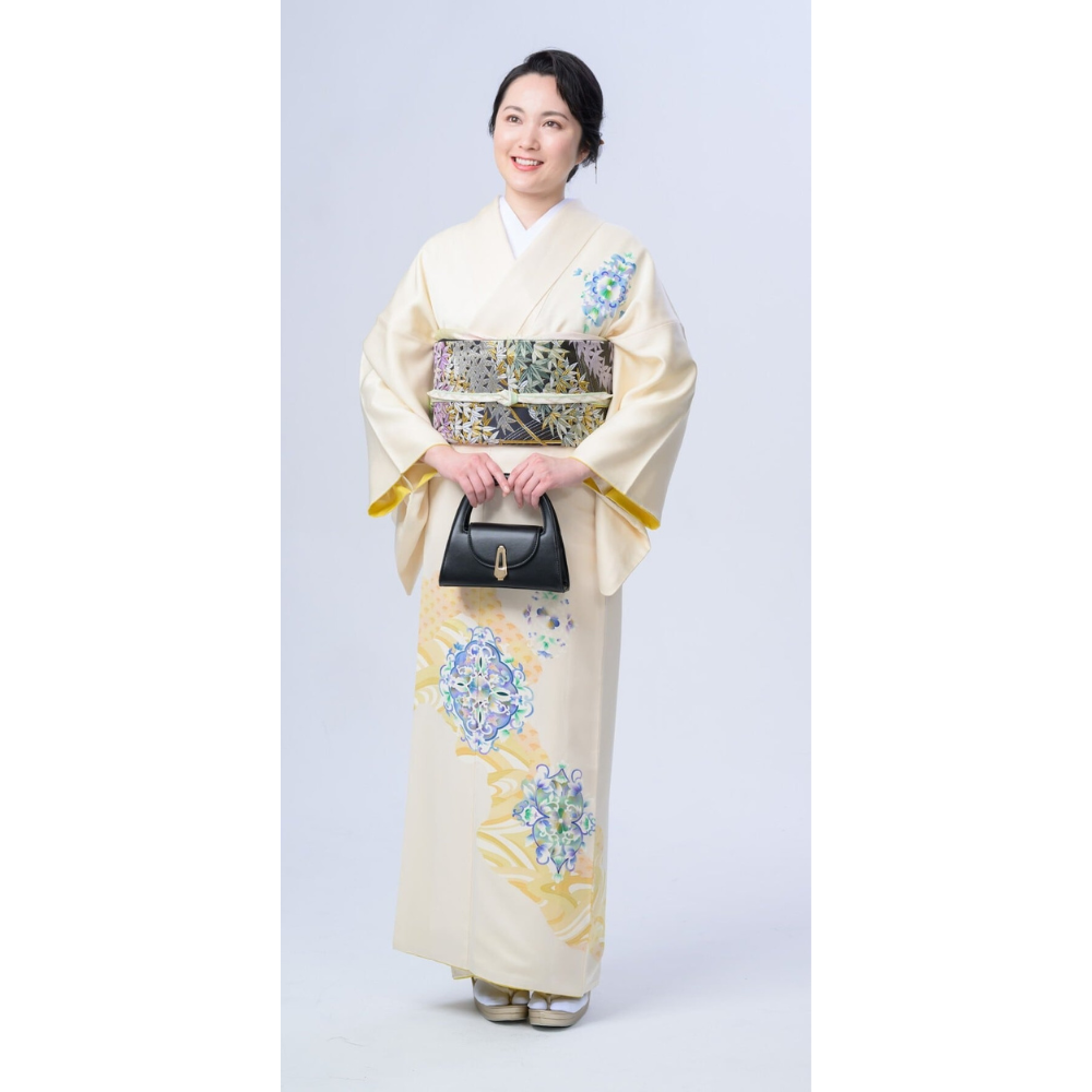 柔らかなクリーム色に風流な流水模様が印象的で、さまざまなシーンで上品さを引き立てます。