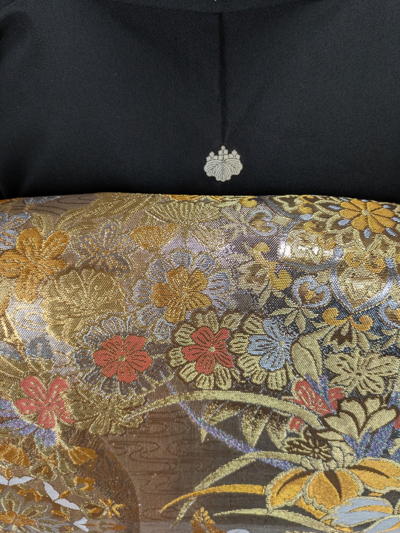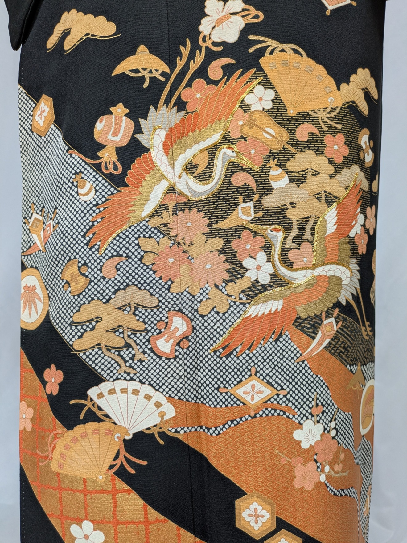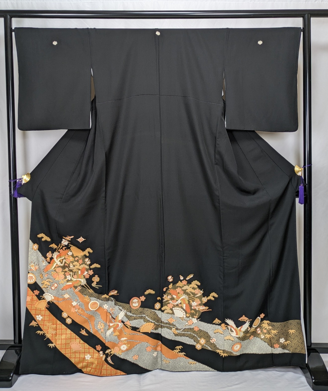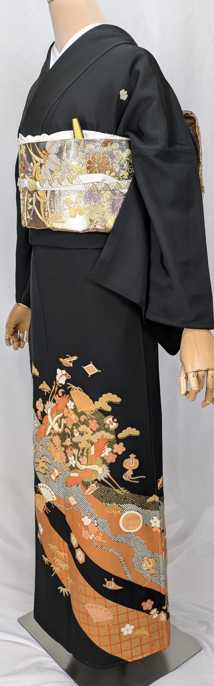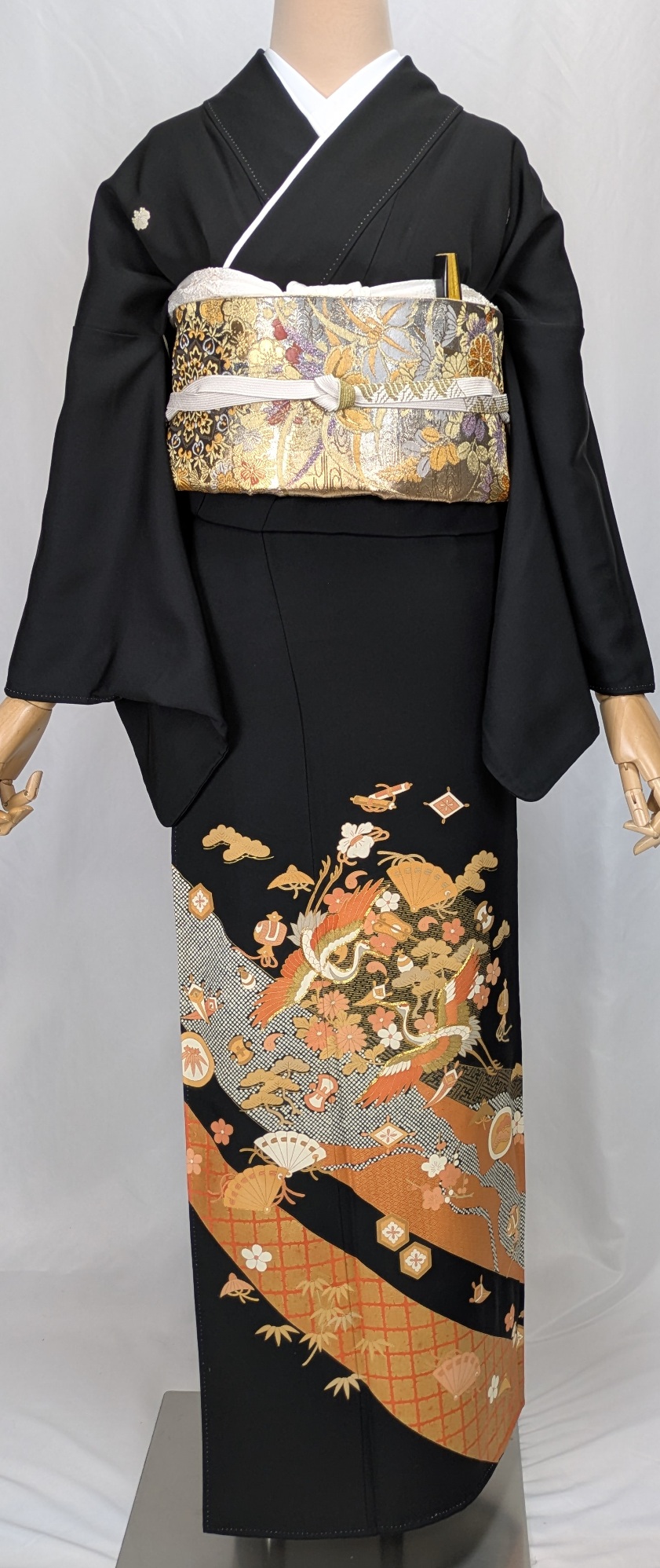 上品な黒色の地に繊細な飛鶴文様が広がり、さまざまなシーンで格調高い印象を与えます。